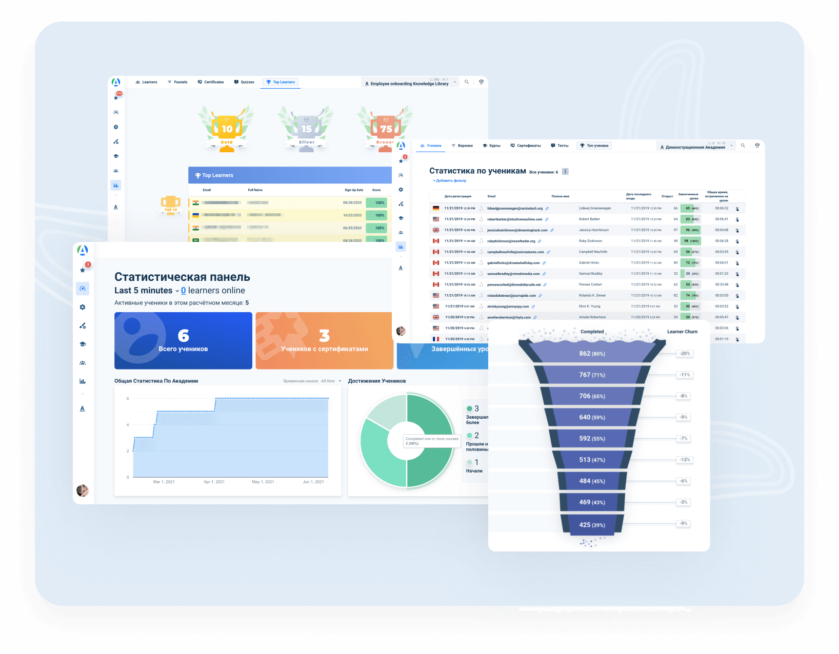 Это позволит собрать воедино данные об обучении и бизнес показателях (KPI сотрудников, продажи и т.п.) и понять как обучение влияет на ваш бизнес в целом.