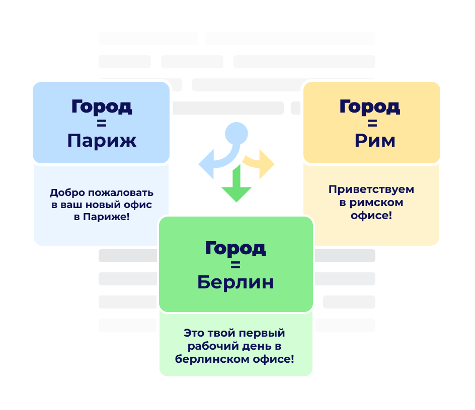 Благодаря ей вы сможете адаптировать контент урока под каждого ученика. Несколько учеников, в зависимости от их характеристик, будут видеть один и тот же урок по-разному. Допустим у вашей компании есть несколько филиалов в разных странах. Ученики из Италии будут видеть информацию об их офисе в Риме, а ученики из Франции об офисе в Париже.