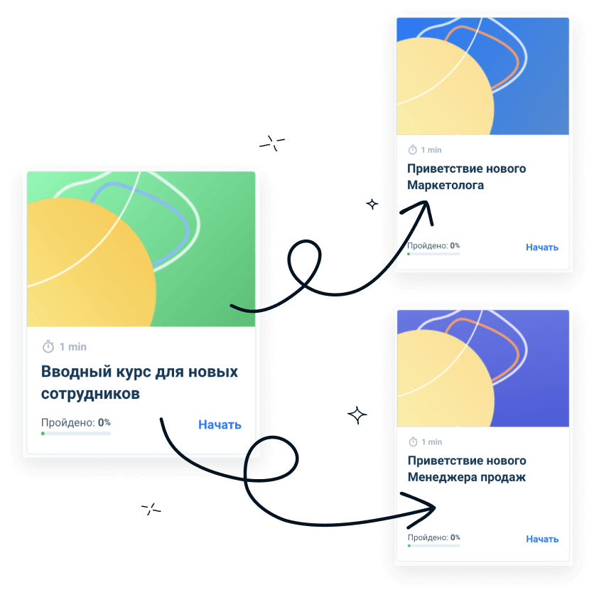 Например, вы можете создать разные порталы для обучения сотрудников и клиентов, или разграничить отдельными порталами обучение сотрудников в разных филиалах или городах.