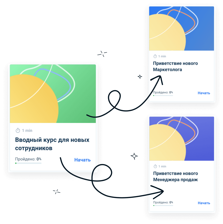 Например, пройдя все курсы в команде «Знание продукта» ученик автоматически перейдет в команду «Технологии продаж». Таким образом вы сможете организовать поэтапное обучение и сделать его максимально продуктивным.