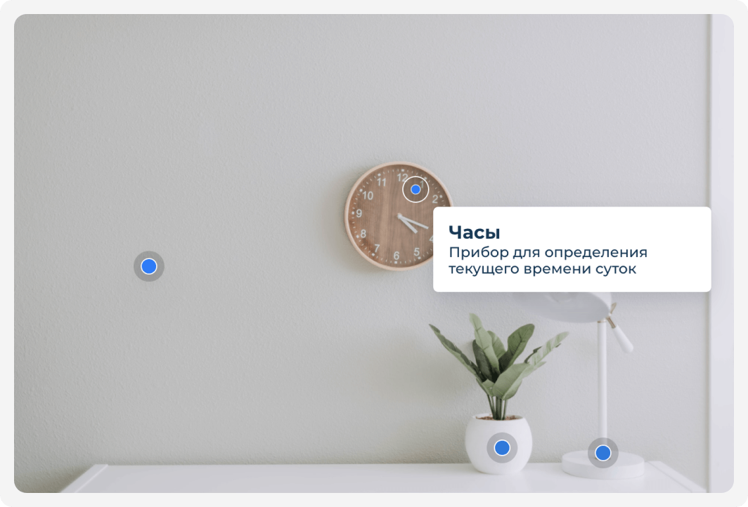 На любом изображении, которое вы добавите в урок можно делать отметки, и при наведении на них пользователь увидит текстовые подсказки.