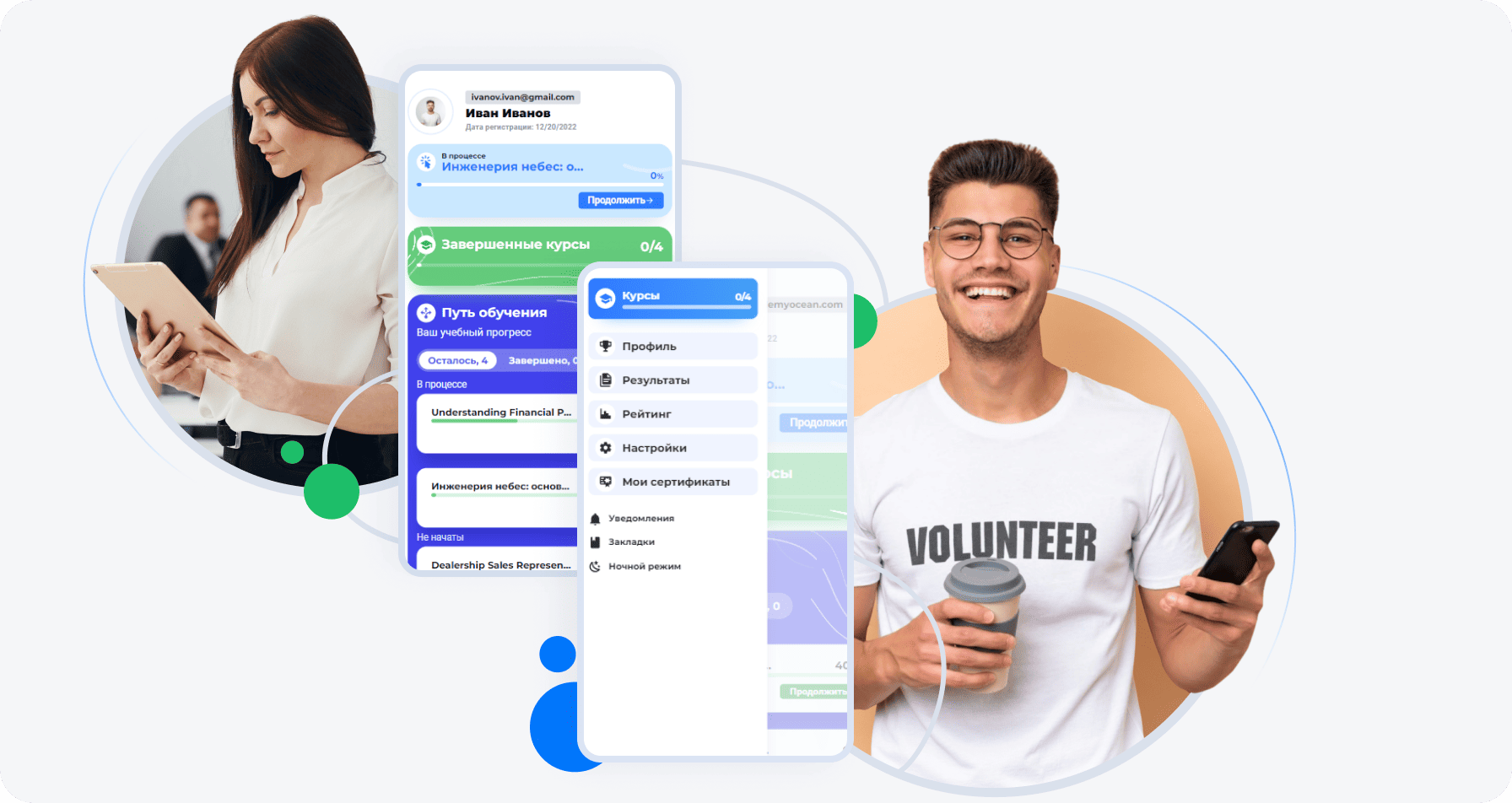 AcademyOcean LMS для некоммерческих организаций отлично подходит для обучения людей различного возраста, ролей, культурного происхождения.