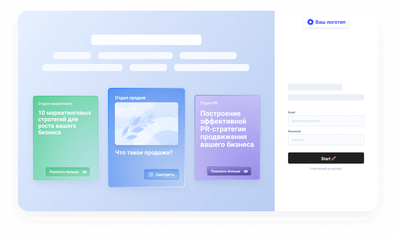 Загрузите логотип и значок фавикона, используйте нашу палитру цветов и темы чтобы создать персонализированную среду обучения.