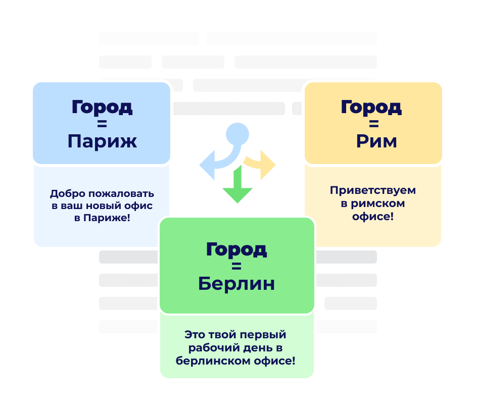 Представьте: одни ученики увидят план вашего офиса в Берлине и видеообращение их руководителя, а другие - план Парижского офиса и список сотрудников из Франции.