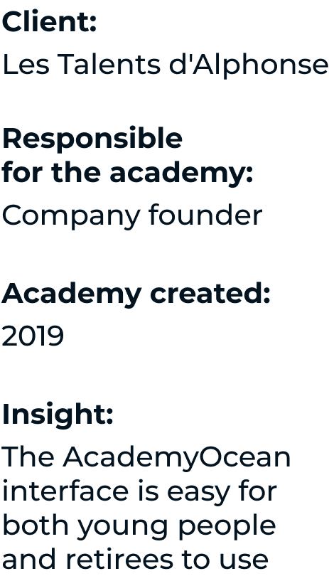 At the end of 2019, AcademyOcean received an unusual request from Paris. Startup founder Barthélemy wanted to create an online Academy for retirees, and they were very excited to tell us about their ideas: